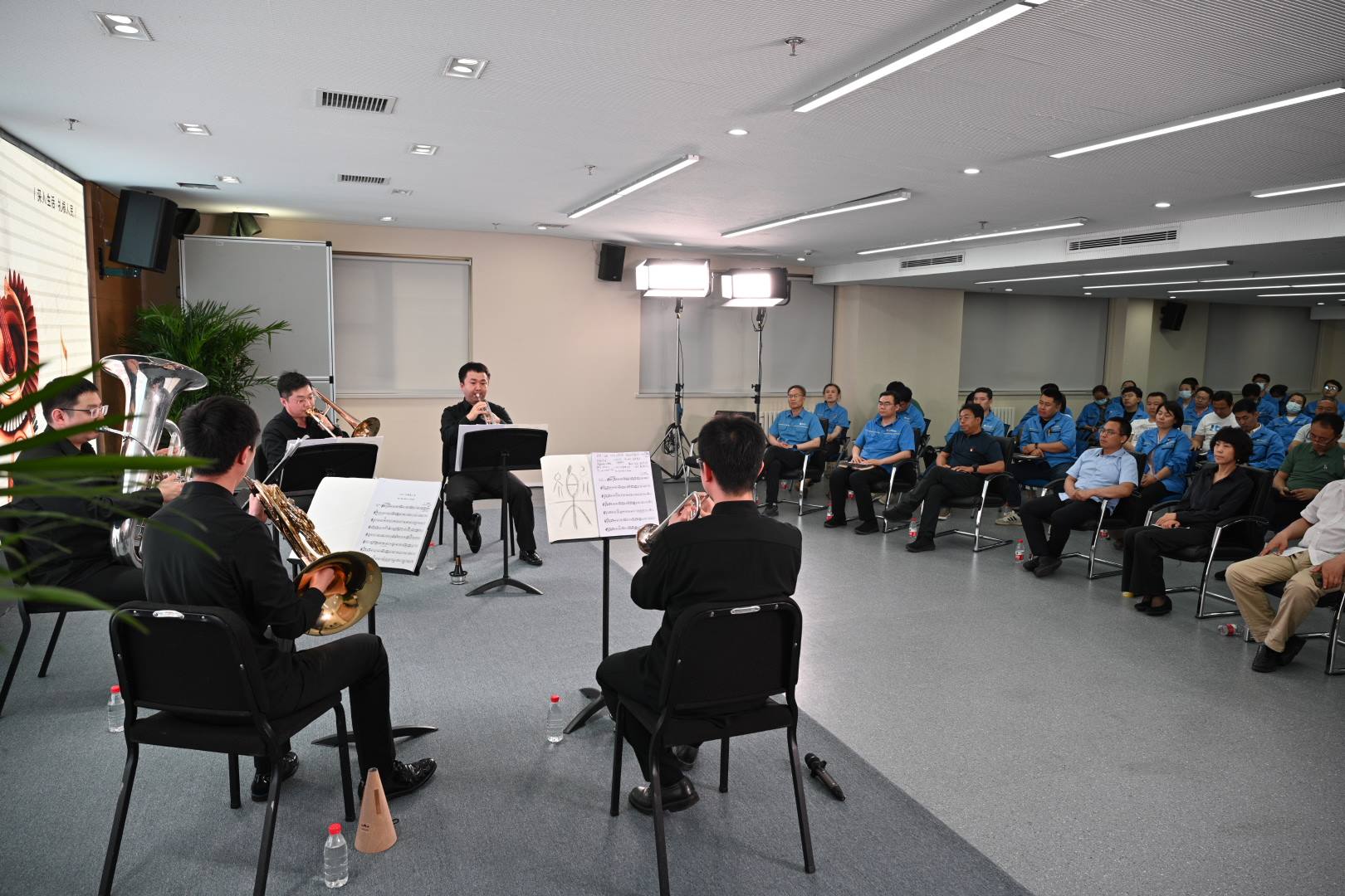 5月17日,国家大剧院五月音乐节公益演出走进阿苏卫生活垃圾焚烧发电厂,艺术家们为环卫工人带来了一场精彩的铜管五重奏音乐会。集团领导,昌平区城管委、昌平区百善镇和小汤山镇有关领导以及阿苏卫园区公司、IM电竞装备公司、昌平公司、平谷公司一线职工代表等近百人参加活动。