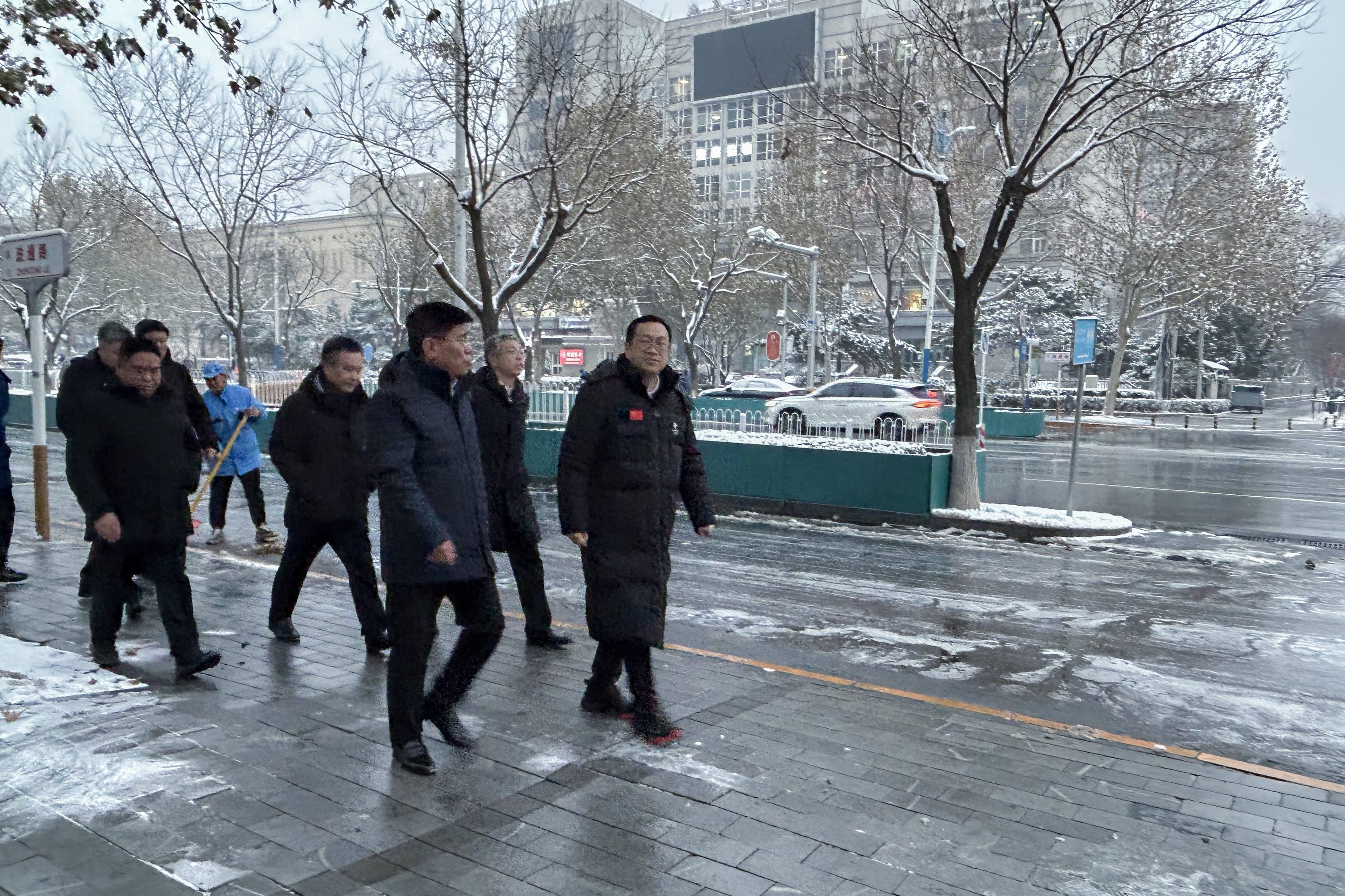 为有效应对强降雪天气,集团成立了以主要领导为总指挥的扫雪铲冰总指挥部,下设13个分指挥部,并成立了7支扫雪铲冰应急队伍。同时充分发挥国有企业在组织和体制上的优势,成立党员突击队、青年突击队,认真总结多次极端天气下的环卫应急服务保障经验,坚持挂图作战,责任到岗到人,分类、分级、分气候条件安排工艺。集团党委书记、董事长高踪阳,党委副书记、总经理何亮带头深入一线,指挥除雪工作,检查工作质量,同时慰问坚守岗位的干部职工。