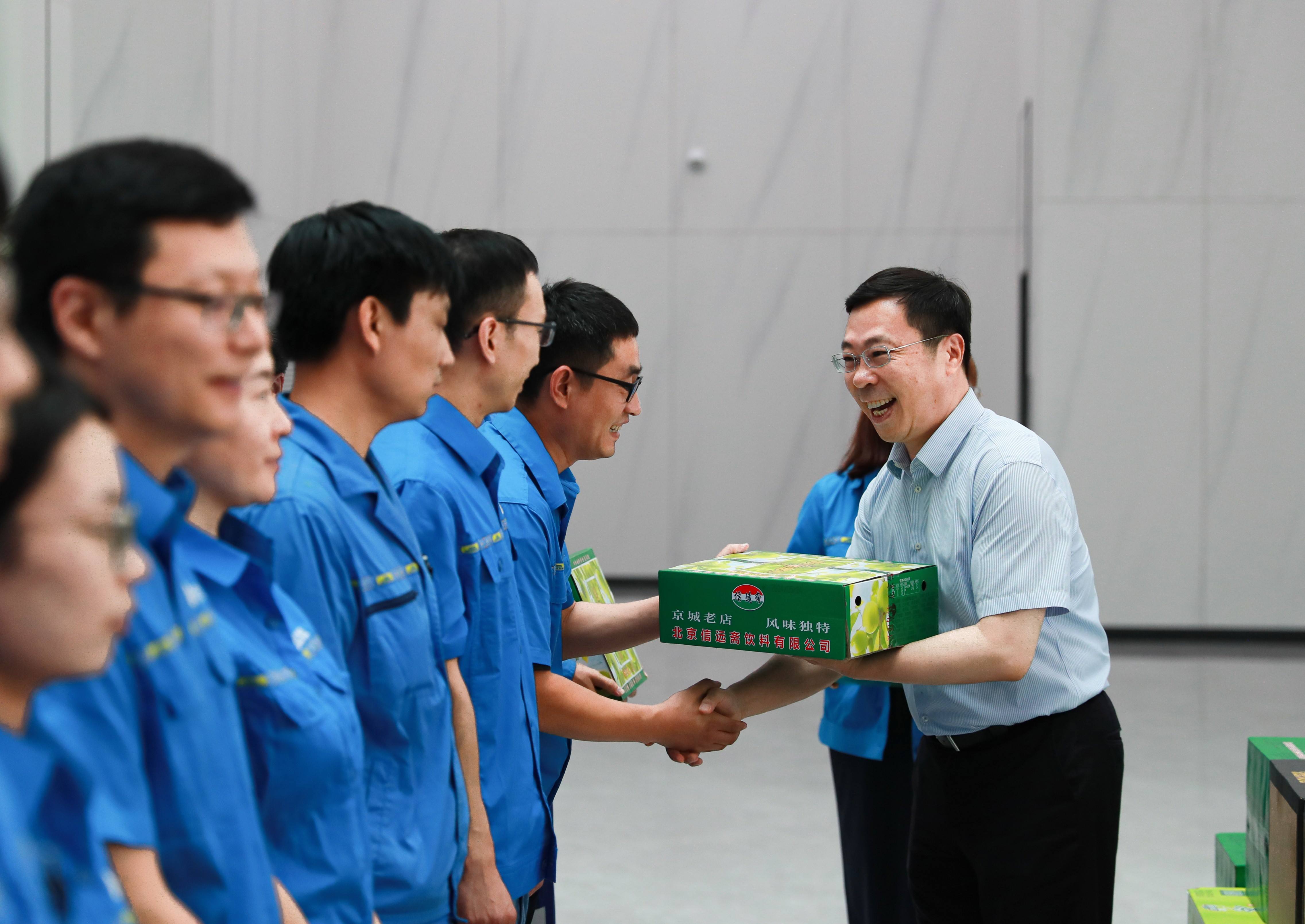 6月21日下午,中华全国总工会副主席、书记处书记、党组成员金善文带队来到IM电竞集团安定园区分公司,开展“送清凉”活动,看望慰问一线环卫职工,并送上防暑降温物品和慰问金。中国海员建设工会全国委员会主席、分党组书记李庆忠,集团党委书记、董事长高踪阳,副总经理刘凯等陪同慰问。