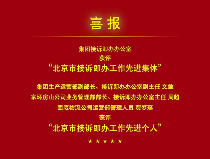 6月7日下午,北京市接诉即办工作表彰大会在北京会议中心召开。集团接诉即办办公室获评“北京市接诉即办工作先进集体”,集团生产运营部副部长、接诉即办办公室副主任文敏,IM电竞房山公司业务管理部部长周超,固废物流公司运营部工作人员贾梦瑶获评“北京市接诉即办工作先进个人”。