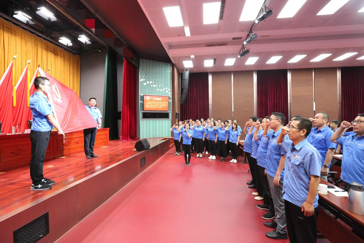 固废物流公司党委举行新党员入党宣誓和重温入党誓词活动。全体党员面向党旗,庄严宣誓。一句句铿锵有力的誓词,见证了每一位共产党员的政治本色。